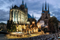 Sommerliches Musiktheater vor historischer Kulisse auf dem Domplatz Die DomStufen-Festspiele in Erfurt sind aus dem Veranstaltungskalender der Thüringischen Landeshauptstadt nicht mehr wegzudenken. Jeden Sommer verwandelt das Theater Erfurt die 70 Stufen der historischen Kulisse aus Dom und Severikirche in eine opulente Opern- oder Musicalbühne und hat damit bisher hunderttausende Besucher erreicht. Längst kommen die Gäste nicht mehr nur aus Deutschland, sondern auch aus vielen europäischen Nachbarländern, den USA, Brasilien, China und Australien. Das verwundert nicht, liegt doch das Festspiel-Areal inmitten der wunderschönen Erfurter Altstadt, die im Sommer mediterranes Flair versprüht und mit vielen Cafés und Restaurants auch kulinarisch einiges zu bieten hat. Seit 2003 tragen die Festspiele die Handschrift von Generalintendant Guy Montavon, unter dessen Leitung die Besucher unvergessene Inszenierungen und Uraufführungen erleben durften. Die hohe Nachfrage spricht für die künstlerischen Leistungen des Theaters Erfurt und hat in den vergangenen Jahren zu einer Erweiterung des Platzangebotes auf der Zuschauertribüne und zu einer Ausweitung der Aufführungstermine geführt. Von Beginn an werden die DomStufen-Festspiele von der Sparkassen-Finanzgruppe Hessen-Thüringen als Generalsponsor gefördert und begleitet.
